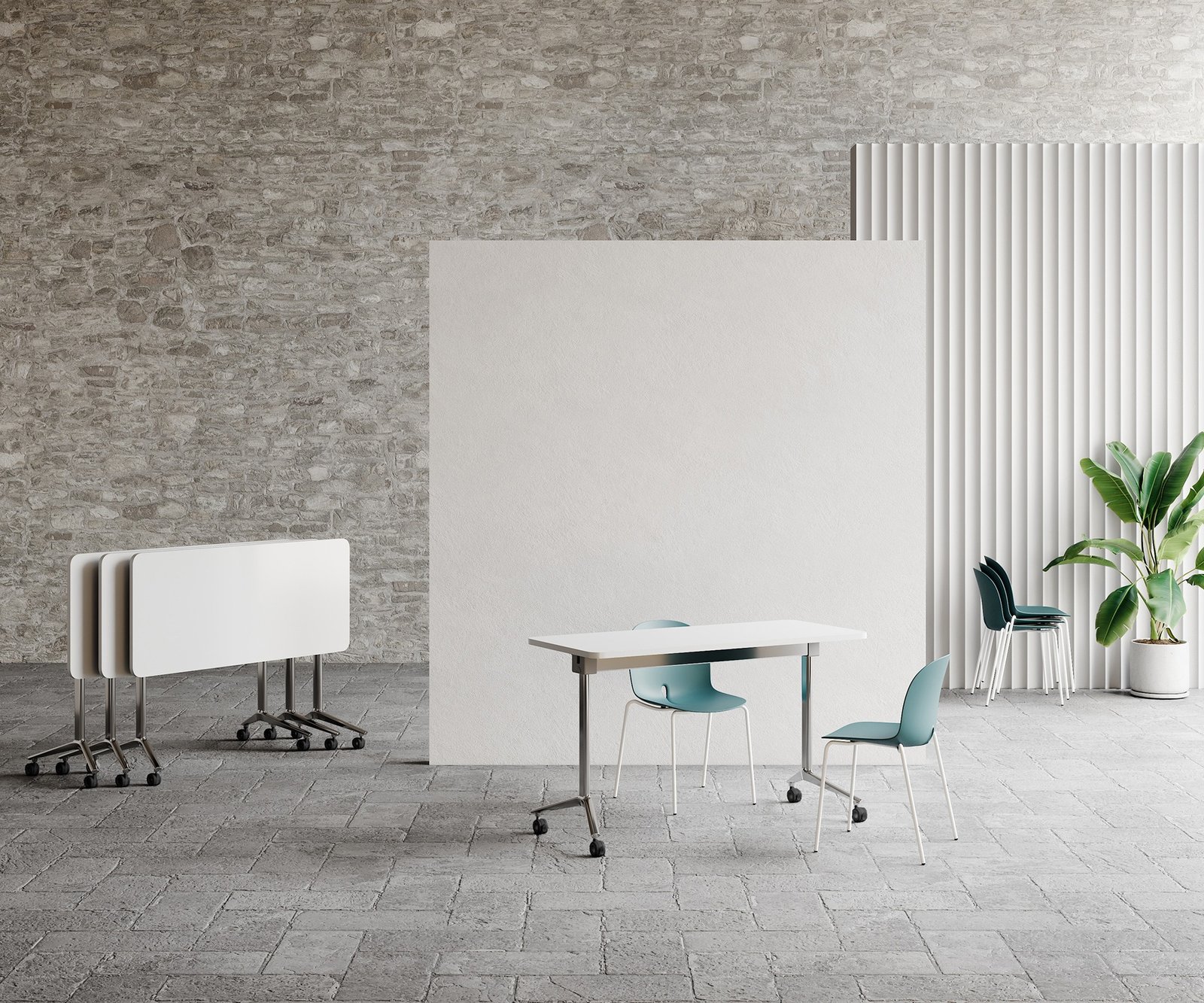 Singolar or modular for training areas, suitable for offices and work environments,  Hanger is a stackable table with a handy system which can easily open and close the table top. Space saving is a peculiarity of our desk.