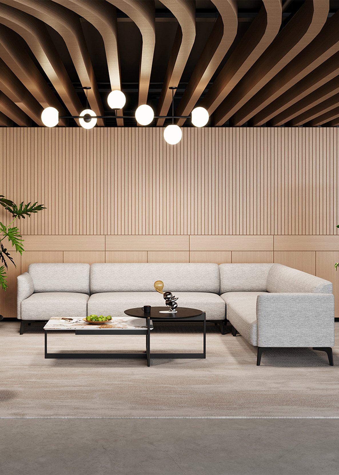 The overall shape of the waterfall sofa combines modern design elements and artistic beauty. The support feet use two bending metal pieces. The shape inspiration comes from the waterfall from the towering mountains. This unique base design makes the overall shape of the sofa concise and modern. The independent module gives users a great degree of design freedom. Users can choose the appropriate soft bag style according to personal preferences and space needs to create unique sofas.